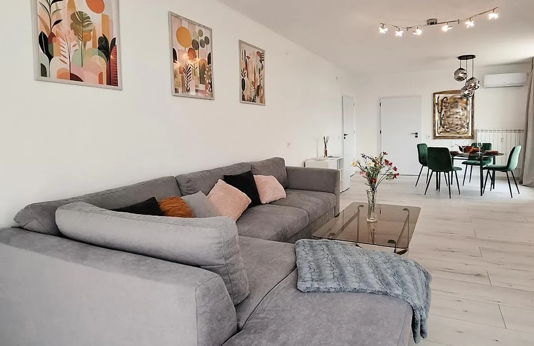 La propriété Duna Panorama -Two-Bedroom Apartment With Terrace dispose d'un balcon et d'un coin salon, ainsi que de conforts tels qu'une climatisation. L'appartement offre 2 chambres à coucher. La résidence comprend également 2 salles de bain. Vous trouverez également un sèche-cheveux, des serviettes et des pantoufles.